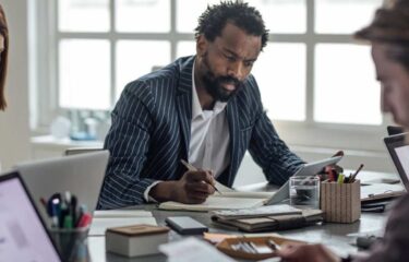 group of people in meeting discussion